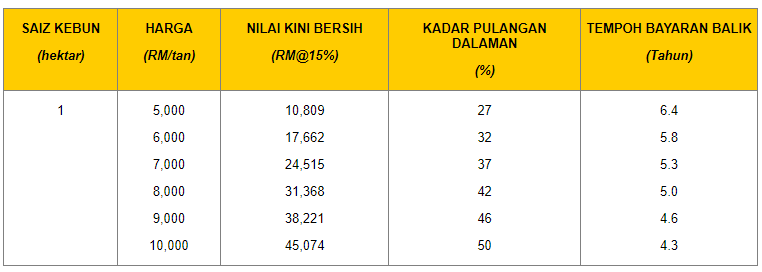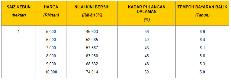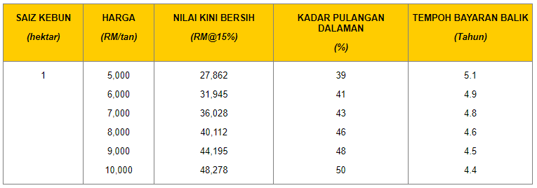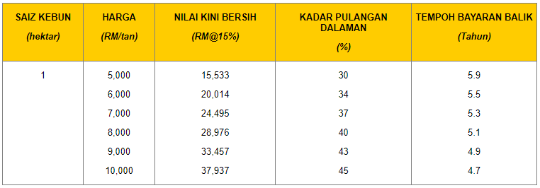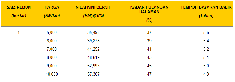 ii)Kos pengeluaran RM2,940/hektar/tahun (Tahun rujukan 2010)